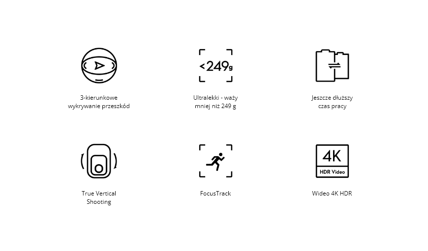 ZDJI Mini 3 Pro oferuje mnóstwo inteligentnych funkcji, które pozwolą Ci nadać Twoim materiałom niepowtarzalny charakter. Wygodnie nagrywaj w pionie w trybie True Vertical Shooting i twórz filmy slow-motion 1080p/120FPS, dynamiczne ujęcia Timelapse i bogate w szczegóły panoramy. Dostępne są również tryby śledzenia FocusTrack - ActiveTrack 4.0, Spotlight 2.0 i Point of Interest 3.0. MasterShots ułatwia nagrywanie profesjonalnych materiałów, a QuickTransfer pozwala pobierać nagrane materiały przez Wi-Fi z prędkością do 30 Mbps. Dzięki temu możesz od razu udostępnić swój film w social mediach!