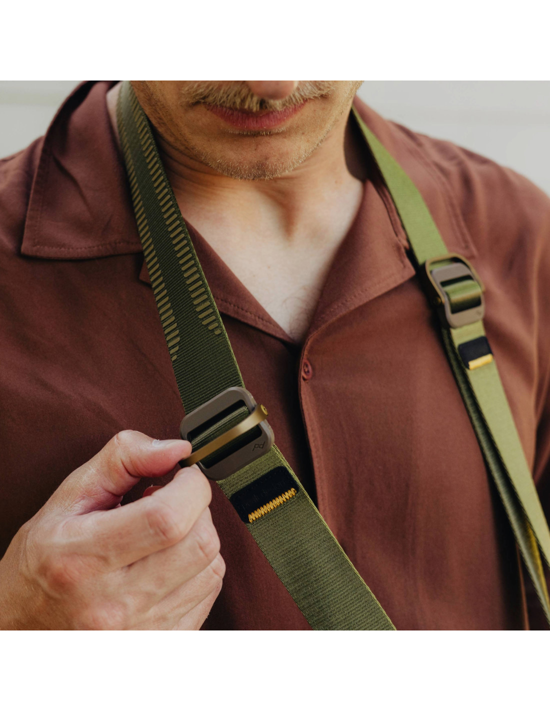Metalowe klamry i precyzyjne regulatory pozwalają szybko dostosować długość paska w zależności od sytuacji – nawet w trakcie wykonywania zdjęć.