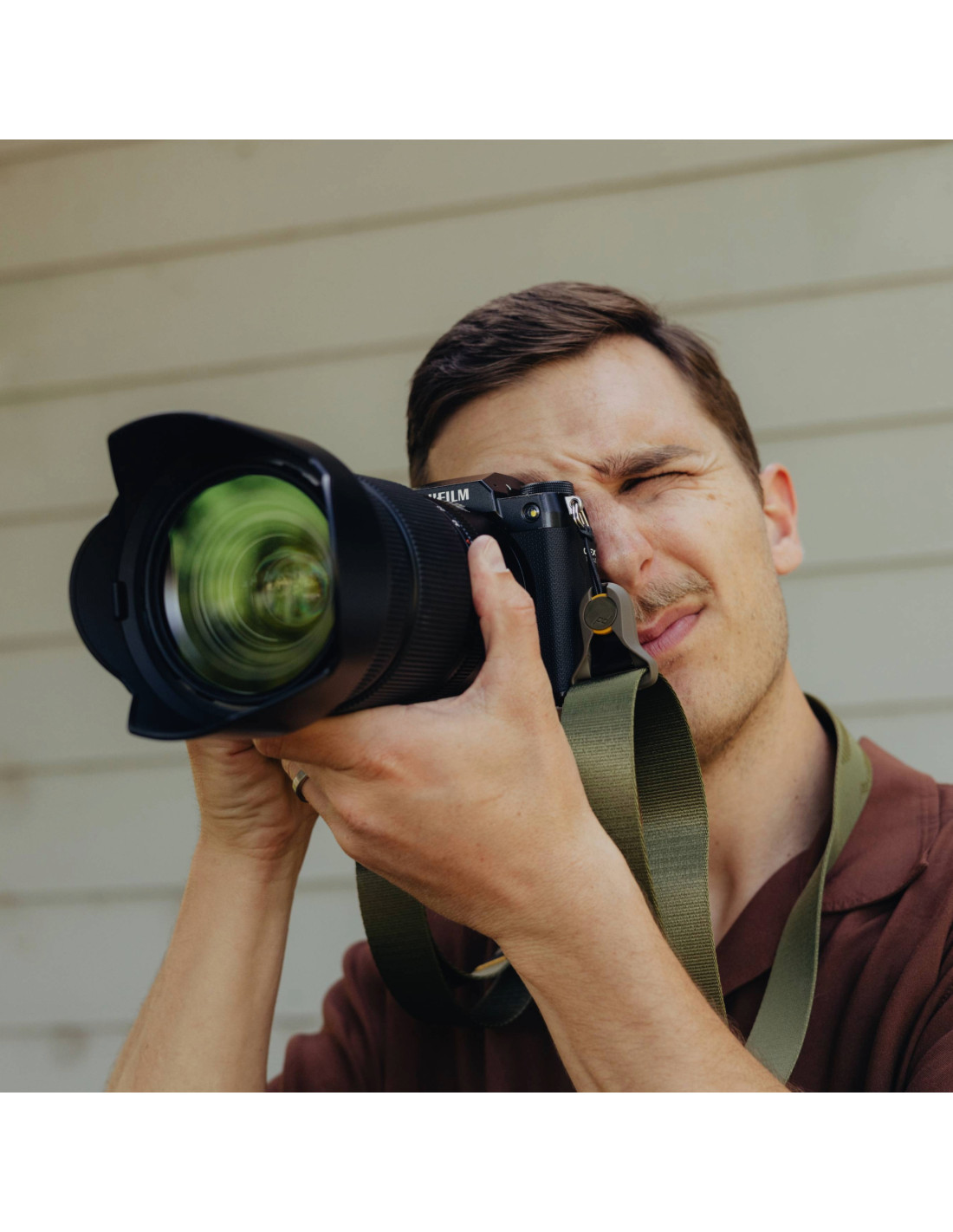 Pasek można nosić na szyi, na ramieniu lub w stylu cross-body, dopasowując go do własnych preferencji i rodzaju fotografowanej sceny.