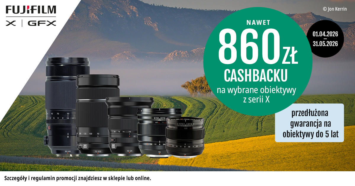 Zakupiony u autoryzowanego partnera biorącego udział w promocji obiektyw należy zgłosić: Fujifilm Promocja