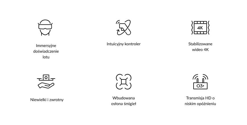 | Czas pracy | Ok. 5 h *Zmierzono przy temperaturze otoczenia 25°C (77°F), po połączeniu z dronem DJI Avata i w stanie stacjonarnym. |